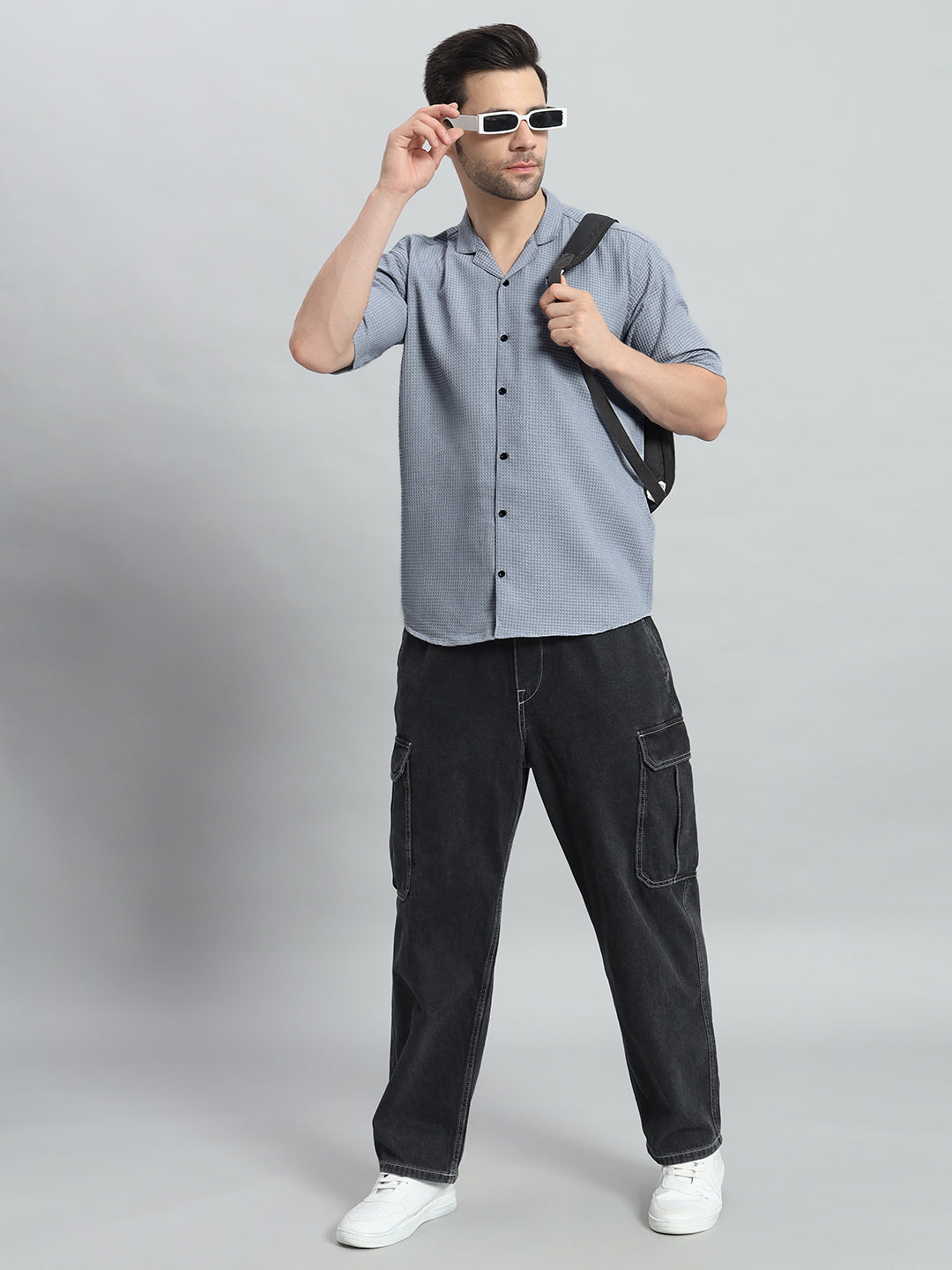 Men's Beige Color 100% Cotton Zig Zag Half Sleeve Shirt