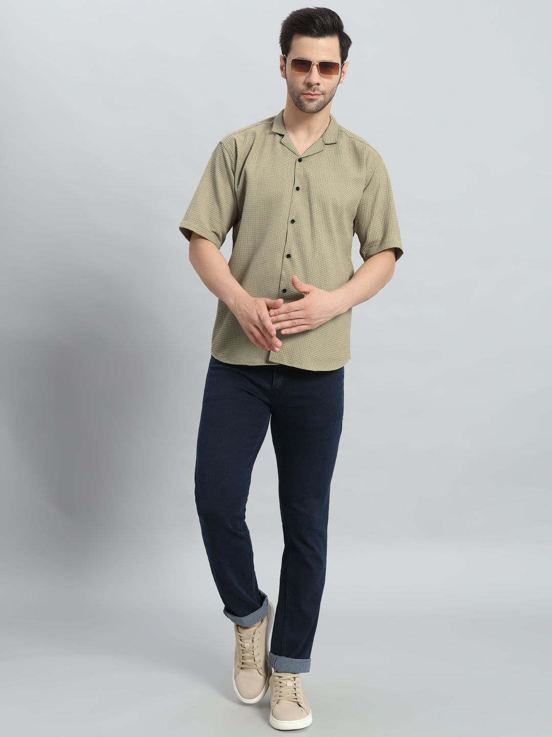 Men's Beige Color 100% Cotton Zig Zag Half Sleeve Shirt