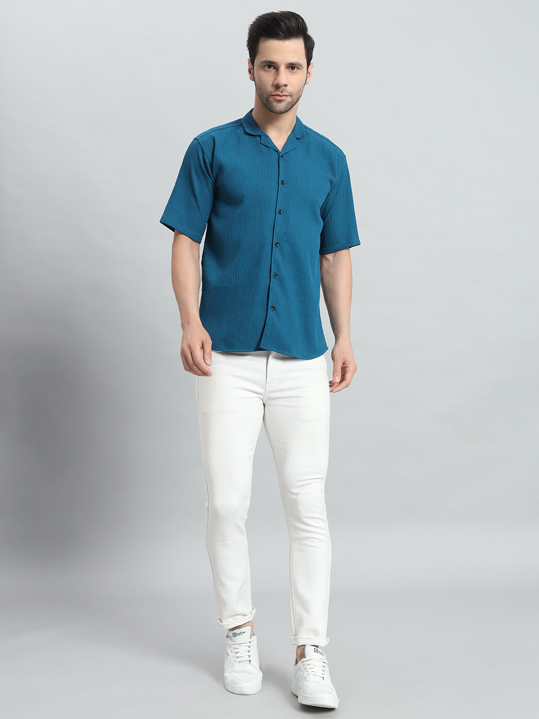 Stylish Petrol Popcorn Fabric Shirt for Men