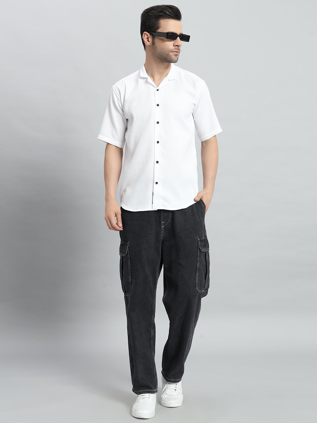 Men's Beige Color 100% Cotton Zig Zag Half Sleeve Shirt
